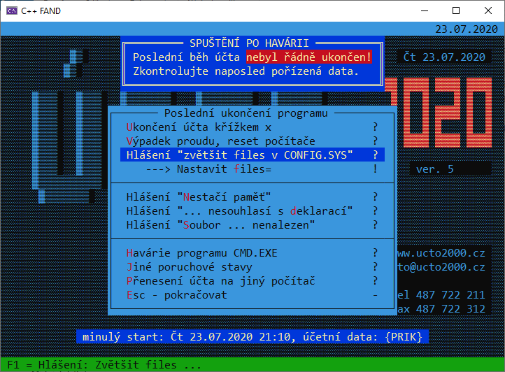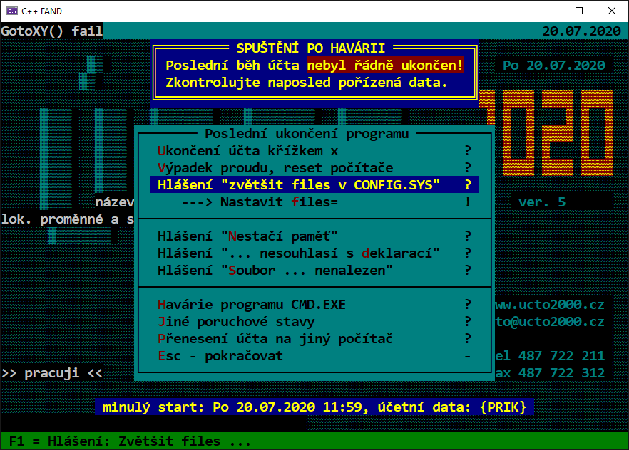 Postupně se tedy podařilo přeložit i MODUL01 v Účtu a program hlásí při startu "SPUŠTĚNÍ PO HAVÁRII"
