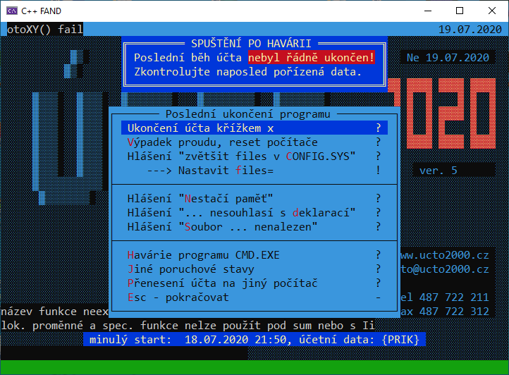 Postupně se tedy podařilo přeložit i MODUL01 v Účtu a program hlásí při startu "SPUŠTĚNÍ PO HAVÁRII"