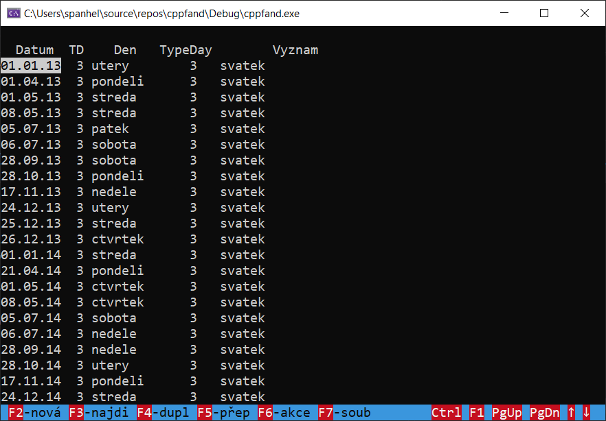 Tak po delší době se podařil trochu větší pokrok. Bylo nutné předělat práci s lokálními proměnnými v uživatelských funkcích. Díky tomu, že se mi podařilo sehnat knihu PC FAND krok za krokem, jsem si mohl přečíst nějaké detaily o tom, jak funguje samotný PC FAND a také jak by měly přesně fungovat některé příkazy. Děkuji tímto ještě jednou p. Vladimíru Valdovi za to, že mi ji věnoval; je jako nová.