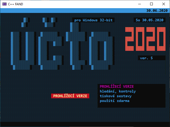 Jak je vidět, jsou tam chyby (některé schválně). Rozměr obrazovky je 80x25, větší jsem zatím nezkoušel.